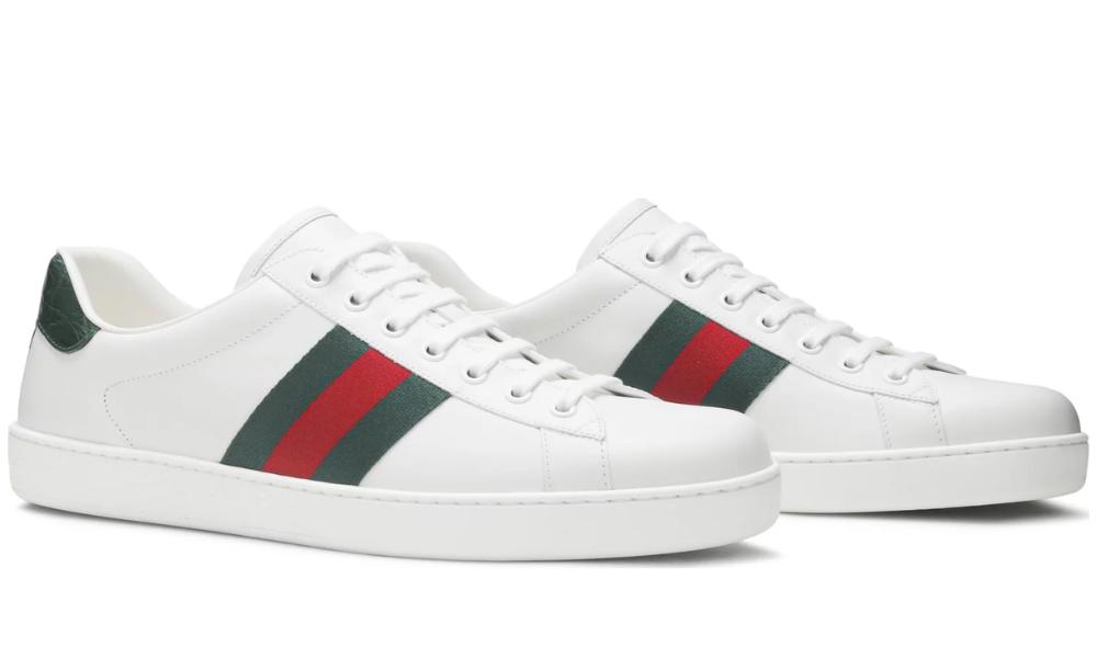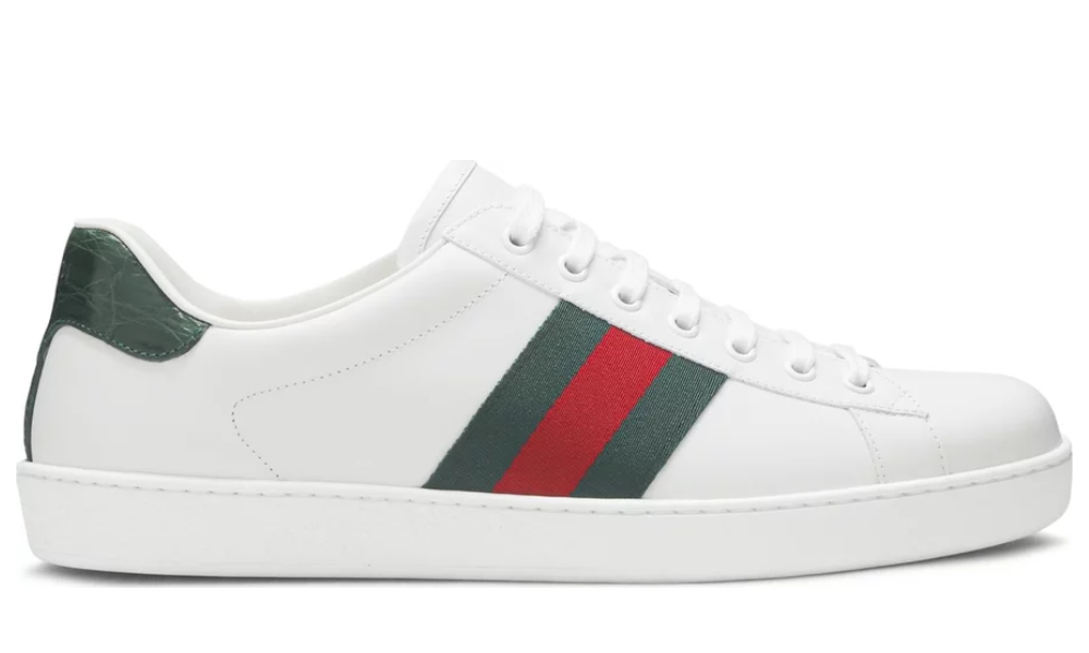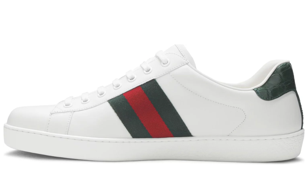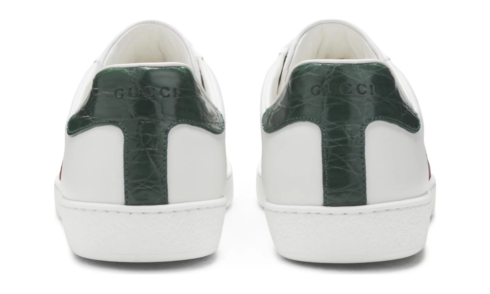 Inspired by the designs of classic tennis footwear, the Gucci Ace features a simple white leather construction. Made in Italy, the shoe’s heel features a green croc-embossed panel for an added luxe touch. The brand’s signature green and red webbing appears on the quarter panel.